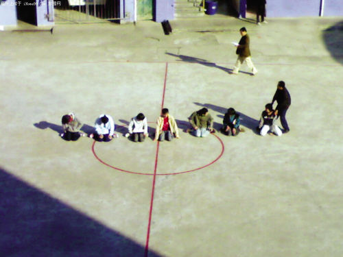 10日,一網(wǎng)友在福州某網(wǎng)上論壇發(fā)了一個“氣憤!學(xué)校如此體罰學(xué)生”的帖子,大意是:9日上午,福州市某技工學(xué)校的7名學(xué)生,在該校操場上被老師罰“跪”。該帖還配發(fā)了兩張照片,7名學(xué)生模樣的人低頭跪坐在操場上。