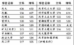 昨天(10日),本市高招一批錄取工作正式開始,17所高校分別確定了在京調(diào)檔線或?qū)嶋H錄取線。其中北京大學(xué)的文科調(diào)檔線為626分,超過(guò)清華4分;理科調(diào)檔線650分,比清華低6分。