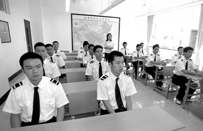 今年7月從高校畢業(yè)后,這38個年輕人懷揣制藥工程、土木工程、電子信息工程、經(jīng)濟(jì)管理等各種專業(yè)的學(xué)歷證書,和航空公司簽訂合同,成為公司一名員工,目前6個月的專業(yè)課程培訓(xùn)屬于試用期。每個月他們可以從公司領(lǐng)到兩三千元的薪水。不過他們不能隨便曠課,因?yàn)闀缯n就等于曠工。