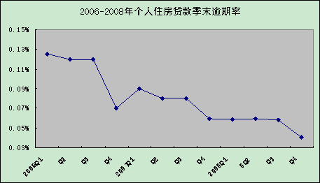 2008年末,全國個人貸款逾期余額為2.47億元,平均逾期率為0.04%,同比下降0.02個百分點。