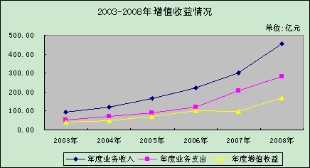 2008年業(yè)務(wù)收入為453.56億元,同比增加152.67億元,增幅為50.74%。業(yè)務(wù)支出為283.46億元,同比增加78.48億元,增幅為38.29%。增值收益為170.10億元,同比增加70.49億元,增幅為70.77%。年末貸款風(fēng)險準(zhǔn)備金余額為285.67億元,占貸款余額的4.68%;年末城市廉租住房建設(shè)補充資金總額為191.93億元,按規(guī)定累計向同級財政上繳96.98億元。