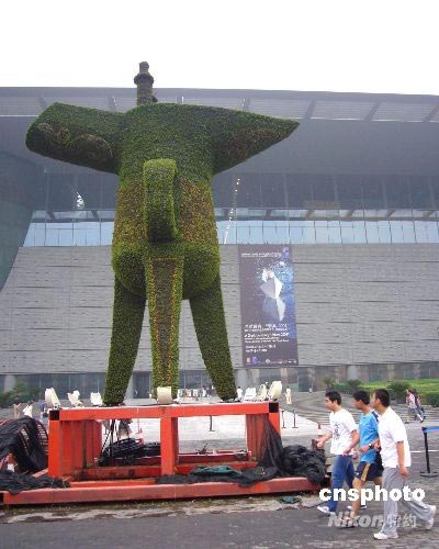 6月29日,一尊高約8米的 “巨鼎” 亮相北京長(zhǎng)安街頭。這尊“巨鼎”是由綠色植被塑成的,為即將到來(lái)的北京奧運(yùn)會(huì)增添了獨(dú)特的韻味,吸引過(guò)路行人側(cè)目。 中新社發(fā) 玉龍 攝