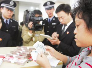 兩名法警立即沖上去,與女子爭奪在一起。最終,女子被帶走,信封被搶了回來,法官從信封里倒出數十個建行存折和數十張銀行卡,并找到一張記錄該公司12個銀行賬戶的單子,“戰(zhàn)果不錯啊!”執(zhí)行法官笑了。