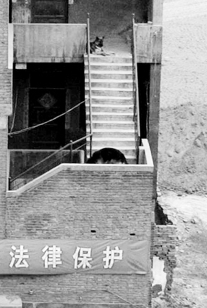 郭長喜說,自己家本來養(yǎng)的有一條狗,但看到周圍鄰居拆遷遇到的問題,就花錢買了兩條牧羊犬。從此,三只狗天天為這個(gè)家站崗放哨。記者采訪過程中,一只牧羊犬一直臥在露天樓梯上,目光炯炯的望著四周。