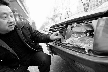 昨天中午,在“翠園·錦榮世家”小區(qū)的地下車庫前,業(yè)主馬志宏捂著自己的左眼,激動(dòng)地說,前晚8時(shí)許,他像往常一樣將車開到小區(qū)的地下車庫,卻被看車人告知他沒有停車卡不能進(jìn)入。馬志宏詢問原因得知,小區(qū)物業(yè)當(dāng)天下午開會(huì)制定了一條規(guī)定——沒有購買停車位,沒有小區(qū)停車卡,不能將車停入車庫。隨后,雙方發(fā)生口角,并產(chǎn)生肢體沖突!芭赃呎玖宋辶鶄(gè)保安,一看我跟看車的吵架,就一起上來打我,把我的左眼打傷了!瘪R志宏松開手,記者看到,他的左眼明顯腫脹,呈青紫色,眼中還布滿血塊。馬志宏向記者出示了鄭州市第一人民醫(yī)院的診斷證明:“左眼瞼明顯腫脹、淤血,瞼結(jié)膜明顯充血,球結(jié)膜大片出血、水腫,角膜水腫……左眼視力明顯下降,為0.25!薄八麄冇锌啥嗳,把我的車也砸了!敝钢\噹烨暗囊惠v奧迪車,業(yè)主曹明奇對(duì)記者說,和馬志宏一樣,前晚10時(shí)許,他來停車時(shí)也被告知沒有停車卡不能停車。曹明奇說,他看暫時(shí)無法協(xié)商,就想先把車?yán)锏暮⒆铀突丶,沒想到剛走出不遠(yuǎn),就有七八個(gè)不明身份的人把他的車砸了。記者看到,車前兩個(gè)大燈和一個(gè)尾燈全被砸碎(如上圖),車身上也有許多擦痕。