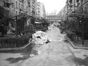 “現(xiàn)在最大的問題是保潔和保安!毙^(qū)業(yè)主委員會負(fù)責(zé)人傅先生說,寧工新寓是一個(gè)有著1000戶居民的大小區(qū),由于物管突然撤離,大量生活垃圾無人清掃清運(yùn),只得堆在樓前、綠地的空曠處,十多天下來,小區(qū)已是臟亂一片,“再這樣下去,肯定臭翻天!”