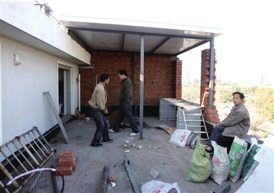 居民薛先生說,9號(hào)樓原本6層,樓頂有一個(gè)閣樓式的建筑。今年10月底,居民突然發(fā)現(xiàn)有工人往樓頂運(yùn)砂石料,并在樓上打樁,建起五六間簡易房。“甚至凌晨兩三點(diǎn)鐘還在運(yùn)料,讓人不得安生!11月13日,有居民在小區(qū)內(nèi)拉起抗議條幅,要求制止這種搭建的行為。購買樓頂?shù)膹埿漳凶颖硎,他以每平方?000余元的價(jià)格從開發(fā)商手中將頂樓買下,施工屬于自己家正常的裝修行為,別人無權(quán)干涉。