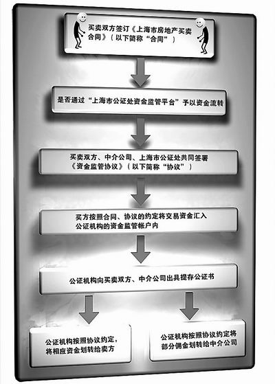 與上海市公證處從事的其他公證業(yè)務(wù)不同的是,二手房資金監(jiān)管過(guò)程中,公證處并非獨(dú)立第三方,而介入其中成為主體之一。據(jù)介紹,在資金打入公證處監(jiān)管賬戶之前,二手房上下家、中介公司和上海市公證處將簽定一份《資金監(jiān)管協(xié)議》。上海市公證處與上下家共擔(dān)整個(gè)交易過(guò)程中的資金風(fēng)險(xiǎn)。