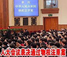 十屆全國人大五次會議 上午10時 閉幕會 1、表決關(guān)于政府工作報告的決議草案 2、表決關(guān)于2006年國民經(jīng)濟和社會發(fā)展計劃執(zhí)行情況與2007年國民經(jīng)濟和社會發(fā)展計劃的決議草案 3、表決關(guān)于2006年中央和地方預(yù)算執(zhí)行情況與2007年中央和地方預(yù)算的決議草案 4、表決中華人民共和國物權(quán)法草案 5、表決中華人民共和國企業(yè)所得稅法草案 6、表決關(guān)于第十一屆全國人民代表大會代表名額和選舉問題的決定草案 7、表決中華人民共和國香港特別行政區(qū)選舉第十一屆全國人民代表大會代表的辦法草案 8、表決中華人民共和國澳門特別行政區(qū)選舉第十一屆全國人民代表大會代表的辦法草案 9、表決關(guān)于全國人民代表大會常務(wù)委員會工作報告的決議草案 10、表決關(guān)于最高人民法院工作報告的決議草案 11、表決關(guān)于最高人民檢察院工作報告的決議草案 閉 幕