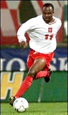 這位1978出生的希臘帕納辛奈科斯隊的前鋒是一個尼日利亞人,不過在波蘭總統(tǒng)的親自過問下,這位黑人前鋒得以迅速加入波蘭國籍,而他在代表波蘭國家隊的第一場比賽中就不負眾望攻入一球,使本隊逼平了東歐勁旅羅馬尼亞。他在本次預選賽中攻入了8球,對于波蘭第一個從強隊如林的歐洲賽區(qū)第一個出線,起了決定性的作用,也得到了波蘭人民的一致認可,已經(jīng)被公認為是波蘭的英雄人物。