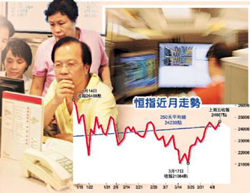 恒指上周累升403點,收報24667點,是3月底以來,連續(xù)三個星期錄得升市,升幅達到3558點,但近期上升動力有緩和跡象。例如當(dāng)大市低位時,獨領(lǐng)群雄的匯控,近日升勢不繼。反而,內(nèi)地銀行股卻接力向上。