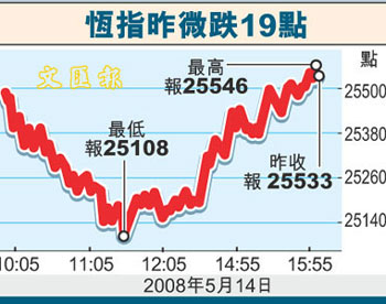 中新網(wǎng)5月15日電 據(jù)香港文匯報報道,港股14日早在缺乏利好消息、加上獲利盤涌現(xiàn)下,曾跌逾400點(diǎn),但在午后內(nèi)地股市彈升帶動下,跌幅顯著收窄。A股升近3%,令港股低位反彈400點(diǎn),恒指全日收報25533點(diǎn),只跌19點(diǎn),成交萎縮至682億元,是近3個月以來最低。