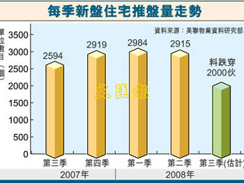 中新網(wǎng)7月7日電 據(jù)香港文匯報報道,美聯(lián)集團(tuán)表示,香港過去數(shù)季發(fā)展商推盤的單位數(shù)目相當(dāng)穩(wěn)定,近3季均維持約2900個單位左右的水平,預(yù)期第三季未會再有此類項(xiàng)目,加上近期樓市氣氛未及年初,因此相信第三季發(fā)展商推盤步伐會有所減慢,估計(jì)單位將跌穿2000個的水平,較第二季跌三成,并創(chuàng)5個季度的新低。