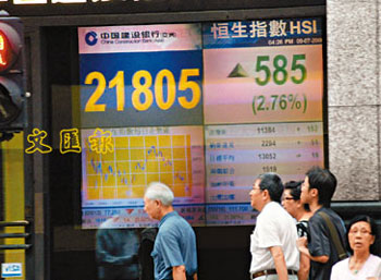 香港恒生指數(shù)9日上升585點。(圖片來源:文匯報)