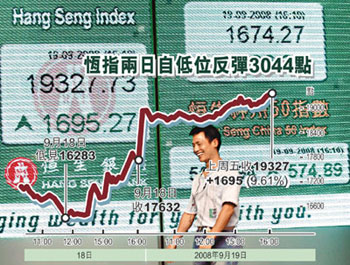 中新網(wǎng)9月22日電 據(jù)香港《文匯報》報道,美國政府的一連串救市措施,刺激道指上周五大漲368點(diǎn),收于11388點(diǎn)。21日晚上,國家證監(jiān)會又公布放松上市公司股票回購的管制,無疑為A股再注強(qiáng)心針。