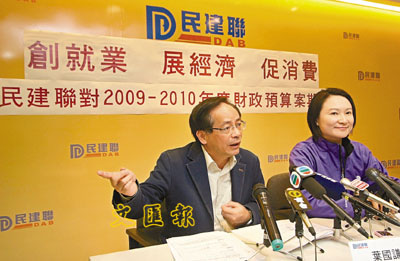 針對市民與企業(yè)稅務負擔,民建聯(lián)提出涉及總額286億元的減免措施,包括設上限地寬免全港差餉及退還上年度征收的地租、2008/2009年度5成薪俸稅。其它建議還包括加強支持中小企業(yè),為有困難行業(yè)提供100%信貸擔保;加快與內(nèi)地聯(lián)合開發(fā)河套與邊境區(qū);向中央爭取繼續(xù)擴大香港人民幣業(yè)務范圍等。