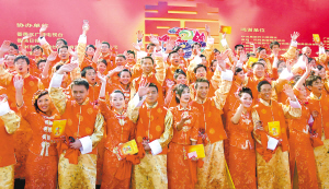 2008年的第一天,79對(duì)新人在番禺廣場參加了第十屆番禺青年集體婚禮。在傳統(tǒng)的吹打樂聲中、在一片中國紅的喜慶氣氛里,來自廣州、佛山、深圳等地的青年,還有一對(duì)中國和愛爾蘭的跨國情侶,在數(shù)千市民的見證下喜結(jié)良緣,正式結(jié)為夫妻,攜手走進(jìn)幸福的人生路。