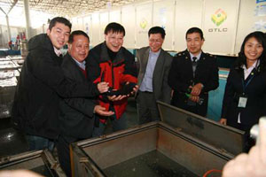 公司董事長鄭德茂介紹說,該配送中心○七年五月開始運(yùn)行,現(xiàn)在每天有四輛二十多噸淡水魚采用“一站式”通關(guān)模式直達(dá)港澳,占內(nèi)地總體供應(yīng)量的一成五。公司主要采用了“密封冷庫運(yùn)送技術(shù)”,設(shè)計(jì)了專門的不銹鋼密封運(yùn)輸柜,以低溫十五攝氏度的液氧封閉狀態(tài)下定量運(yùn)輸?shù)~。