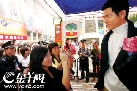 據(jù)了解,今年的聯(lián)展首度吸引了港澳諸多知名景區(qū)的加盟,如香港海洋公園、杜莎夫人蠟像館等。他們都各出奇招來穗“攬客”。如香港杜莎夫人蠟像館不惜斥巨資,投保額100萬元,請(qǐng)專業(yè)的運(yùn)輸公司將“郭富城蠟像”送到活動(dòng)現(xiàn)場(chǎng)助陣。而海洋公園的吉祥物——活潑可愛的“威威獅令”也現(xiàn)身街頭,與廣大市民親密接觸。