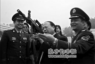 “邊防特勤隊(duì)員太厲害了!”昨日(5日),在廣東邊防總隊(duì)第七支隊(duì)銀湖訓(xùn)練基地看臺(tái)上,30多名來自廣州的政協(xié)委員觀看了邊防官兵的警務(wù)技能、汽車碾壓、防暴應(yīng)用射擊等軍事科目的表演?疾熘螅䥇f(xié)委員們還在邊防部門領(lǐng)導(dǎo)的指導(dǎo)下體驗(yàn)了一回“摸槍”的樂趣。