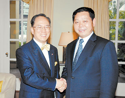 中新網(wǎng)12月18日電 應(yīng)香港特區(qū)行政長官曾蔭權(quán)的邀請(qǐng),深圳市委副書記、市長許宗衡17日率深圳市政府代表團(tuán)訪問香港,為期3日。據(jù)香港文匯報(bào)報(bào)道,許宗衡抵港即在禮賓府拜會(huì)曾蔭權(quán),他表示,深港兩地政府認(rèn)識(shí)越來越一致,合作越來越緊密,溝通越來越密切,了解越來越深入,當(dāng)前深港合作已經(jīng)進(jìn)入歷史上最好的時(shí)期之一。
