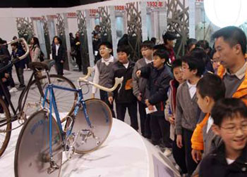 要說此次奧運(yùn)珍品展中最受歡迎的展品,非今年北京奧運(yùn)的場館模型和“祥云”火炬莫屬。每日在北京奧運(yùn)主場館“鳥巢”、“水立方”的微縮模型前和北京奧運(yùn)傳遞火炬“祥云”合影處總是人頭涌動(dòng)。