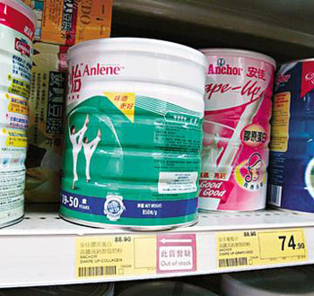 26日香港多間藥房、超市及連鎖護(hù)理店的熱門(mén)奶粉均售罄,店員未能確定何時(shí)才有貨,有連鎖護(hù)理店因奶粉全面缺貨,安排顧客登記訂貨,惟不保證何時(shí)有來(lái)貨。