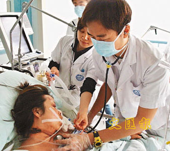 同在19日當(dāng)天,醫(yī)管局派出第二隊醫(yī)療隊,一行約20人赴成都華西醫(yī)院協(xié)助。尹淑玲及伊利沙伯醫(yī)院物理治療師周家偉,沒有猶豫便隨隊出發(fā)!拔覀兊竭_當(dāng)?shù)厥窍挛?時多,全城要默哀。街上的人低下頭,汽車不停響按。”尹淑玲說時,心情仍然沉重。