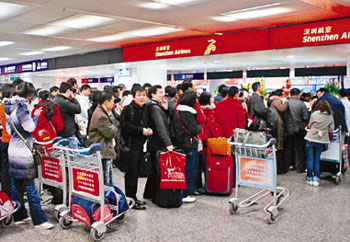 來往香港和內(nèi)地的客流量很大,統(tǒng)計(jì)顯示,深航去年1000多萬旅客中,有近400萬是香港旅客或到香港旅游的人,占了整個運(yùn)輸量近40%。而深圳機(jī)場提供的數(shù)據(jù)顯示,往香港的內(nèi)地游客中,有1/4是通過深圳機(jī)場中轉(zhuǎn)至香港。同時,經(jīng)過香港中轉(zhuǎn)往內(nèi)地的國際旅客數(shù)量也非常龐大。