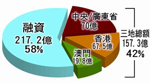 三地資本一共157.3億元,約占大橋主體建設(shè)費(fèi)42%,余數(shù)額將透過(guò)貸款解決。預(yù)計(jì)大橋?qū)⒉贿t于2010年動(dòng)工興建,最快2015年落成。