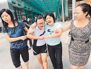 有關(guān)單位22日安排內(nèi)地及香港死難者家屬分批到布吉沙灣殯儀館認(rèn)尸,其中兩名香港青年家屬情緒激動(dòng)嚎哭,現(xiàn)場(chǎng)不時(shí)傳出:“嗚嗚……阿仔呀!”聞?wù)咝乃帷?/p>