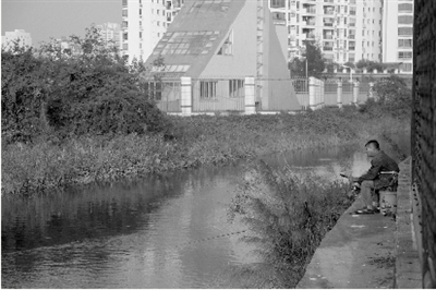 有居民由被破壞圍網(wǎng)進(jìn)入鴨涌河邊垂釣。(圖片來(lái)源:澳門日?qǐng)?bào))