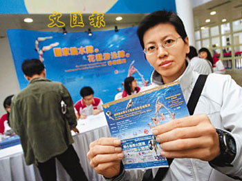 排頭位的郭小姐在開售前3小時已抵達售票處,沒想過自己能成為首名購票人士,并購下1張全場最貴的500元門票。她稱,因錯過了今年8月底國家金牌運動員訪港的表演,遂于29日早6時便起床趕到現(xiàn)場購票,務求買得“靚位”的門票,欣賞郭晶晶、吳敏霞和火亮的高超技術(shù),并期望能有機會與運動員握手。