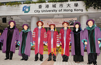 中新網(wǎng)11月9日電 香港城市大學(xué)昨(8日)舉行07年學(xué)位頒授典禮,向10,001名畢業(yè)生頒授學(xué)位,并同時向4名社會杰出人士頒授榮譽(yù)博士學(xué)位,包括長江制衣有限公司創(chuàng)辦人兼主席陳瑞球、香港合和實業(yè)有限公司主席胡應(yīng)湘、著名藝人汪明荃及諾貝爾獎得主Claude Cohen-Tannoudji。