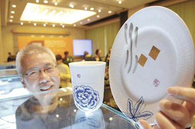 昨日展出的設(shè)計(jì)品,涵蓋時(shí)裝、珠寶、鐘表、瓷器、音響等,將于今晚舉行的設(shè)計(jì)營商周周年晚會拍賣,得款將用作支持機(jī)構(gòu)推廣設(shè)計(jì)活動。平面設(shè)計(jì)師靳埭強(qiáng)與Royal Copenhagen(哥本哈根皇家瓷器)合作,制作10人用的中式青花瓷餐具,名為《華宴》。靳埭強(qiáng)說,設(shè)計(jì)花了半年時(shí)間制作,用上紫荊花及牡丹花兩種花,代表香港回歸中國。