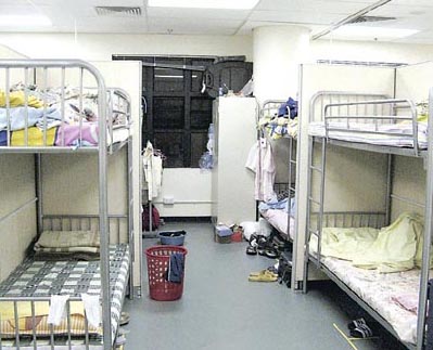 香港科大宿位持續(xù)多年供應(yīng)緊張,科大2006年曾將活動(dòng)室改建臨時(shí)宿舍,被學(xué)生形容為“難民營(yíng)”。去年,逾千名學(xué)生申請(qǐng)宿舍落空,約有近百名學(xué)生在校園靜坐,要求校方提出解決宿位問題的短期方案。(楊曉楓)