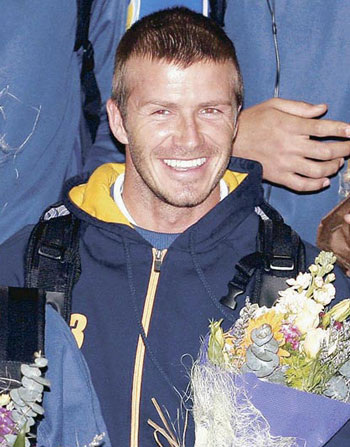 中新網(wǎng)3月7日電 據(jù)香港明報(bào)報(bào)道,英格蘭球星貝克漢姆隨美職球隊(duì)洛杉磯銀河6日旋風(fēng)式抵港,雖然到場(chǎng)接機(jī)的球迷不足100人,但首天已賣出約6000張周日友賽南華的門(mén)券。貝克漢姆及銀河教練似乎未受舟車勞頓影響,抵港不久即拉隊(duì)往中環(huán)蘭桂坊消遣。