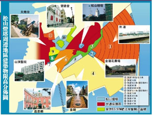 圖:松山燈塔周邊地區(qū)建筑物限高分布圖。(圖片來源:澳門日?qǐng)?bào))