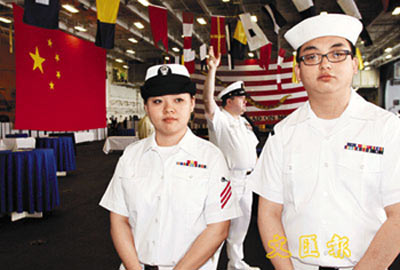 除了消費,也有華裔船員對于能夠看到五月二日的奧運圣火傳遞表示興奮。出生地在上海的朱瑩,是“小鷹號”上為數(shù)不多的華裔船員之一,加入“小鷹號”兩年,目前在船上主要從事機械工程工作。奧運圣火傳遞當日,正好是她的輪休日!白约鹤鳛橹袊耍欢〞タ词セ饌鬟f。中國奧運,我們都是中國人,一定會去捧場!”“因為我是中國人!”