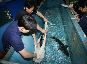 由于北京海洋館的中華鱘是一直在淡水環(huán)境下生活,所以在赴港前,三尾中華鱘都進(jìn)行了一段時(shí)間的;(xùn)練,使其能在海水環(huán)境中適應(yīng)生存。北京海洋館總經(jīng)理胡維勇表示,將會(huì)有兩名北京方面的專(zhuān)業(yè)飼養(yǎng)員隨同赴港。在此之前,已有部分香港海洋公園的工作人員在北京接受了一個(gè)星期的培訓(xùn)。