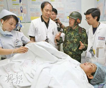 中新網(wǎng)5月22日電 據(jù)香港明報報道,“我吃野草、吃蚯蚓,我告訴自己要活下去,拼命的活下去!口喝了,沒有水,我便喝自己的尿,喝了兩三遍……不知過了多少天,劉大爺來到,他說:‘我是來救你的!’”21日再有一名在廢墟中重傷待援9日9夜的女工獲救,而負責(zé)救援的,正好是香港醫(yī)管局急癥專科醫(yī)生劉楚釗和護士劉炳發(fā)。