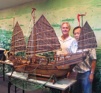 1955年吳十七突發(fā)奇想,根據(jù)幼時記憶開始制作模型,歷時一年多。模型按照原來帆船約1:25的比例制作,他表示,原“摻繒”的實際長度約100尺,這模型的相似度近八成。