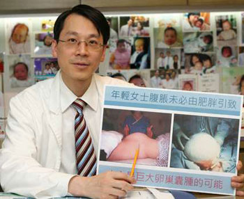 像王小姐的個(gè)案并不罕見。香港婦產(chǎn)?漆t(yī)生盧兆輝說(shuō),以他3、4年前在東區(qū)醫(yī)院的經(jīng)驗(yàn),每周也有4宗個(gè)案,一年約有200至250宗個(gè)案,不過未必每名患者的囊腫皆如此巨大,一般個(gè)案的囊腫直徑約10至20厘米。
