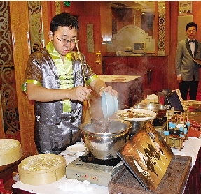 29日記者招待會現(xiàn)場,更邀請六家本次參加美食節(jié)的臺灣與會美食餐廳,如青青餐廳、宜蘭礁溪老爺大酒店、南投金都餐廳、河邊海鮮餐廳、度小月?lián)忻、周氏蝦卷即場示范鎮(zhèn)店之寶的烹調(diào),并向大家推介當(dāng)?shù)仫嬍澄幕?/p>