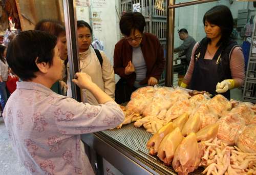 為準(zhǔn)備冬至,昨日九龍城、灣仔、銅鑼灣街市一帶人頭涌涌,不少市民已在早上購(gòu)買(mǎi)餸菜“做冬”。不過(guò)受到禽流感影響,香港首次冬至市面沒(méi)有活雞供應(yīng),街市雞檔全部改賣(mài)冰鮮雞,每只售價(jià)約四十五至七十五元。雞檔檔主表示,全日入了大約一百多只冰鮮雞,不過(guò)擔(dān)心在目前的經(jīng)濟(jì)環(huán)境下,生意難做,因此不敢加價(jià),“現(xiàn)在這種環(huán)境,你再加,人人跑到超市買(mǎi),自己反而沒(méi)生意!