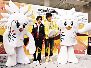 東亞運動會吉祥物“東仔”和“亞妹”。(圖片來源:文匯報)
