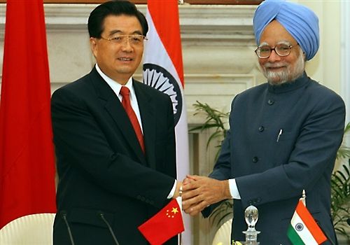 國家主席胡錦濤二十日抵達新德里,開始對印度進行國事訪問。這是中國國家元首十年來首次訪印,也是中印建立戰(zhàn)略合作伙伴關(guān)系后,印度首次接待中國國家元首的出訪。兩個崛起中巨人的握手,引起國際媒體的矚目。