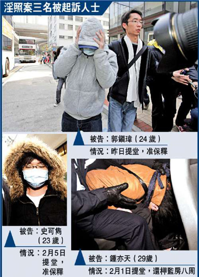 控方在庭上呈上十一張涉案相片,強調(diào)內(nèi)容十分不雅,指相片絕不能在法庭以外地方公開?胤秸J為案情非常嚴重,擔(dān)心被告會棄保潛逃及騷擾證人,另外,控方又指被告精通計算機,可在任何地方再上載照片,對公眾繼續(xù)造成影響,所以反對其保釋外出。