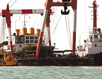 張健文認(rèn)為可以派出曾經(jīng)打撈宋代古沉船“南海一號(hào)”的大型吊船“華天龍”來港,由于“華天龍”現(xiàn)在租給其它公司,正在西江一帶施工,所以最快要到星期五才能抵港。當(dāng)“華天龍”抵達(dá),將拖船吊起后,會(huì)先抽走船內(nèi)的海水,整個(gè)過程需時(shí)約6至7小時(shí)。