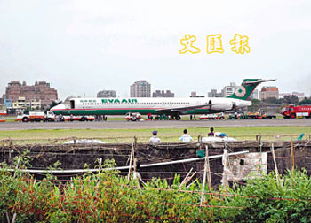 臺灣長榮航空編號B-17913接駁機(jī)15日由桃園飛往高雄,因機(jī)翼輪胎爆胎,迫降高雄國際機(jī)場。 (圖片來源:文匯報)